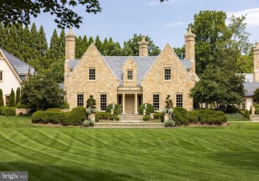 Set among the rolling hills of Great Falls, Alderley Manor is an estate on five acres, inspired by European traditions. The grounds evoke the English Cotswolds, where light-stone manors rise above open expanses and long vistas.nnThe residence was a collaboration between David Cooper of ACG Architects and BOWA Construction, with further enhancements by Hanlon Design Build.